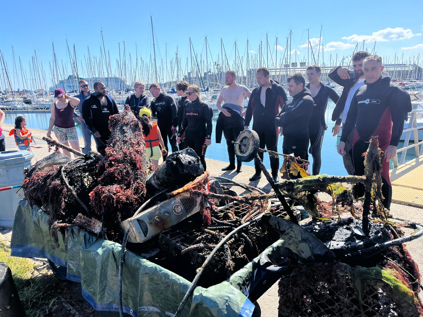 Ce dimanche 9 juin, une trentaine de membres des clubs de plongée de Cherbourg Natation Plongée, ASAM Cherbourg et Hague Marine ont procédé à une collecte des déchets sous les pontons du port de plaisance.
