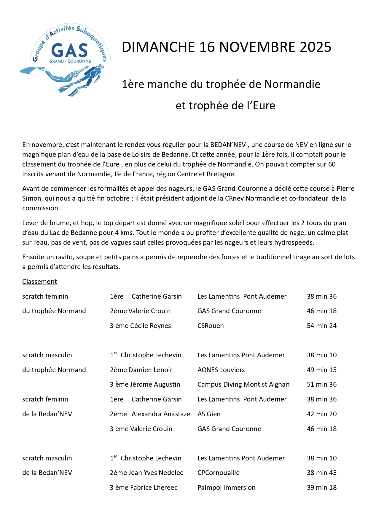 NEV 1ère manche du trophée de Normandie et trophée de l’Eure