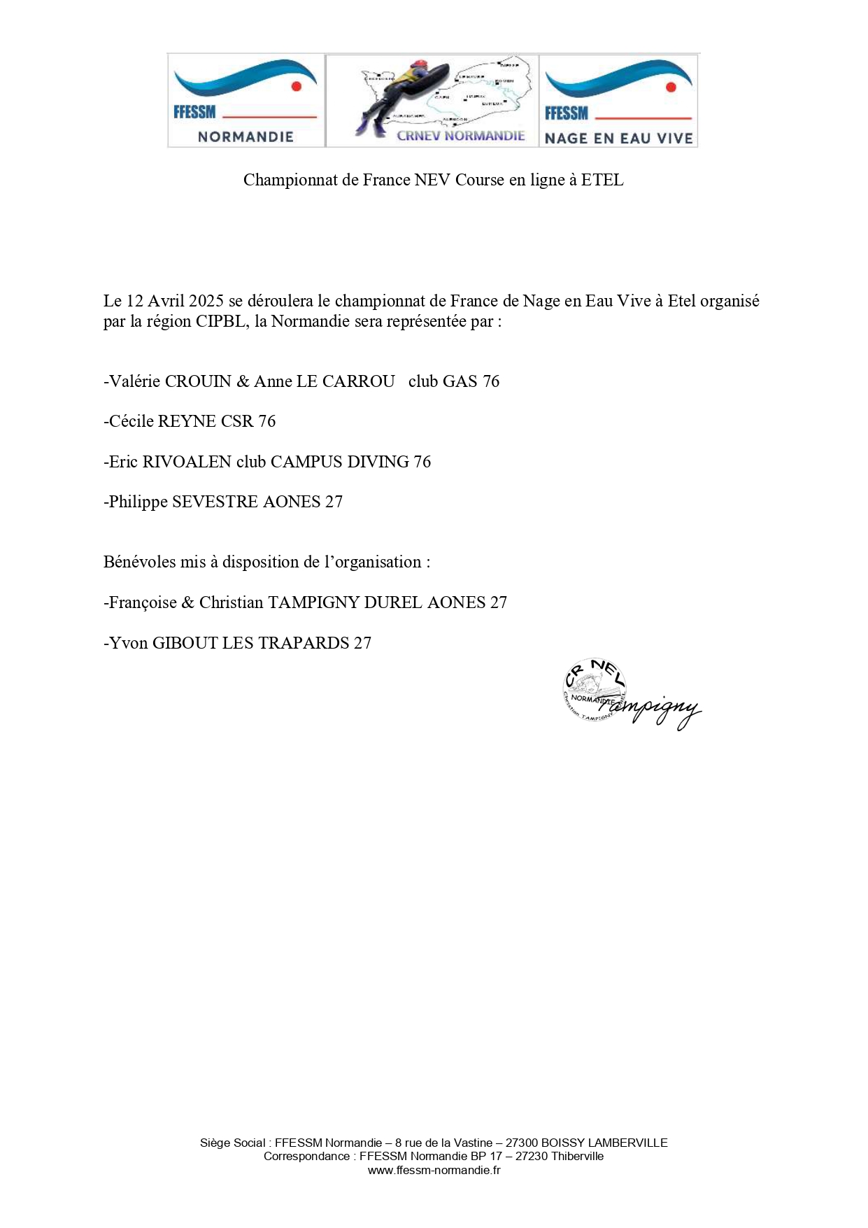 Composition de l'équipe Normande au championnat de France de Nage en Eau Vive à Etel